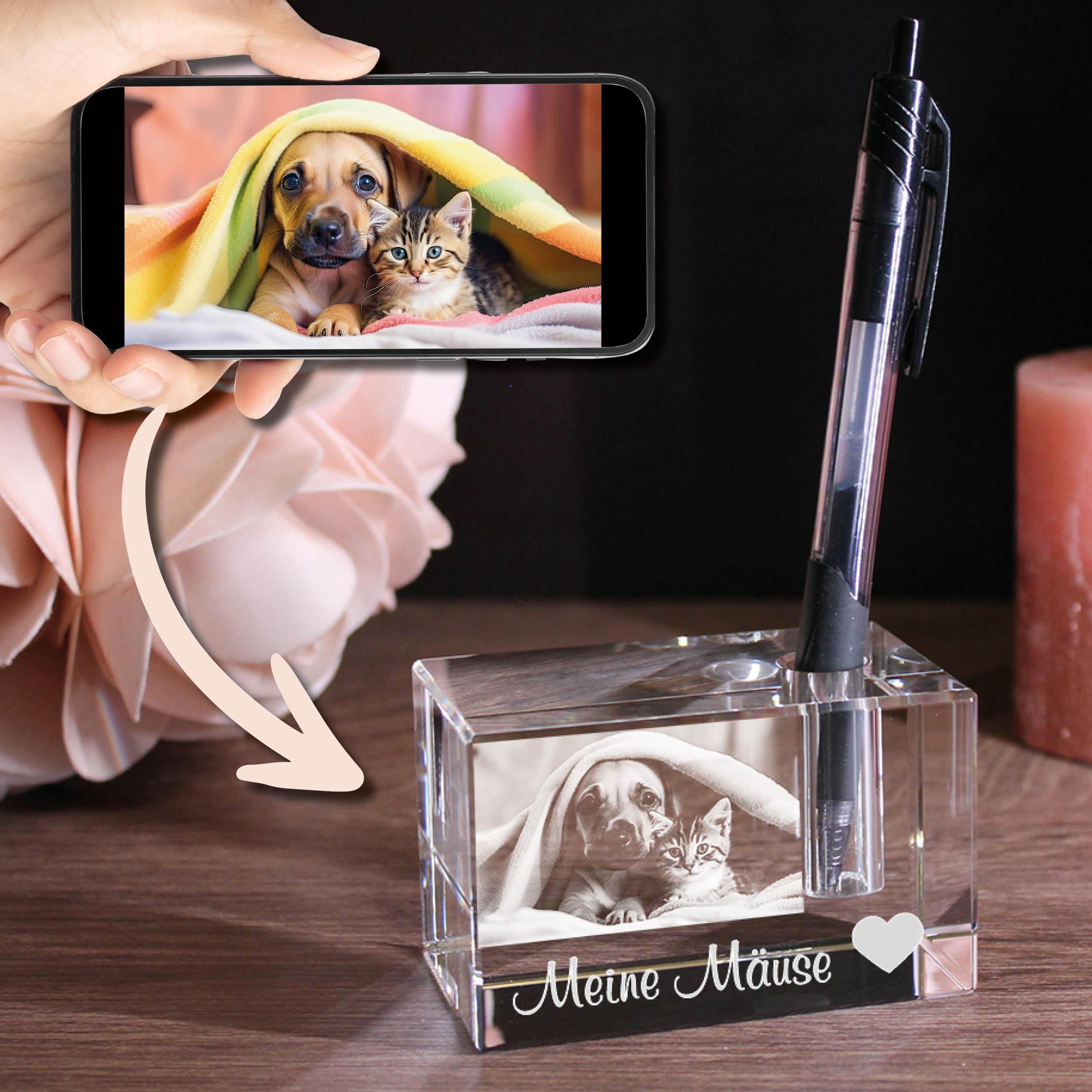 Produktinformationen "Petmemoria 2D/3D Glaskristall Stifthalter"