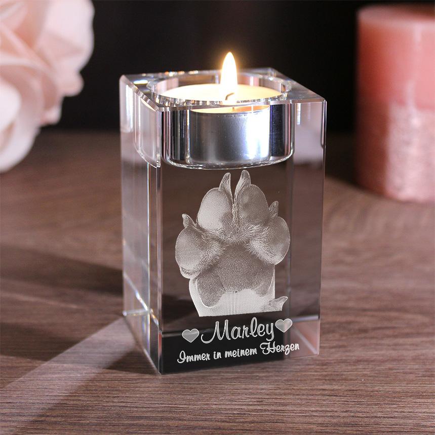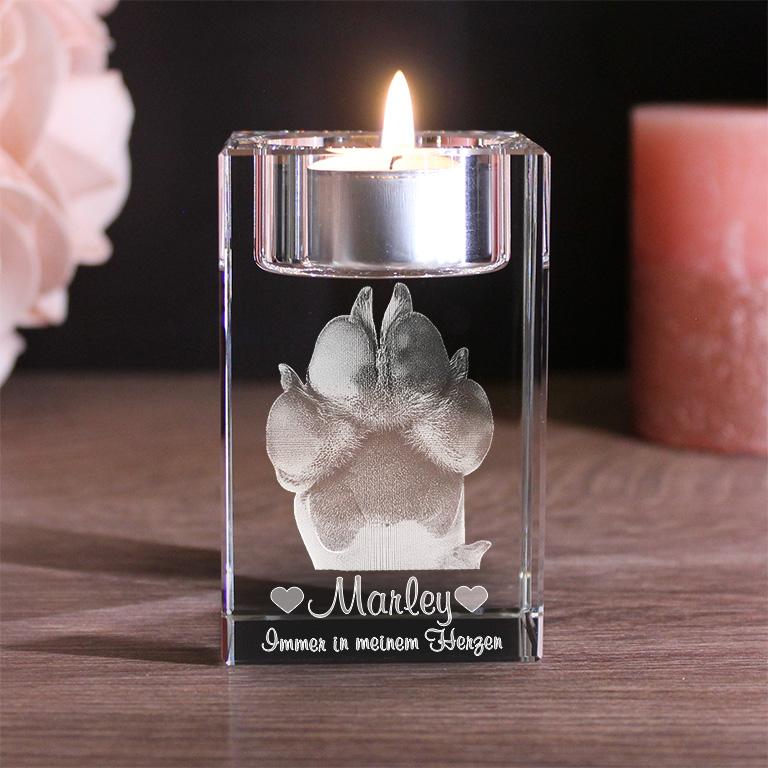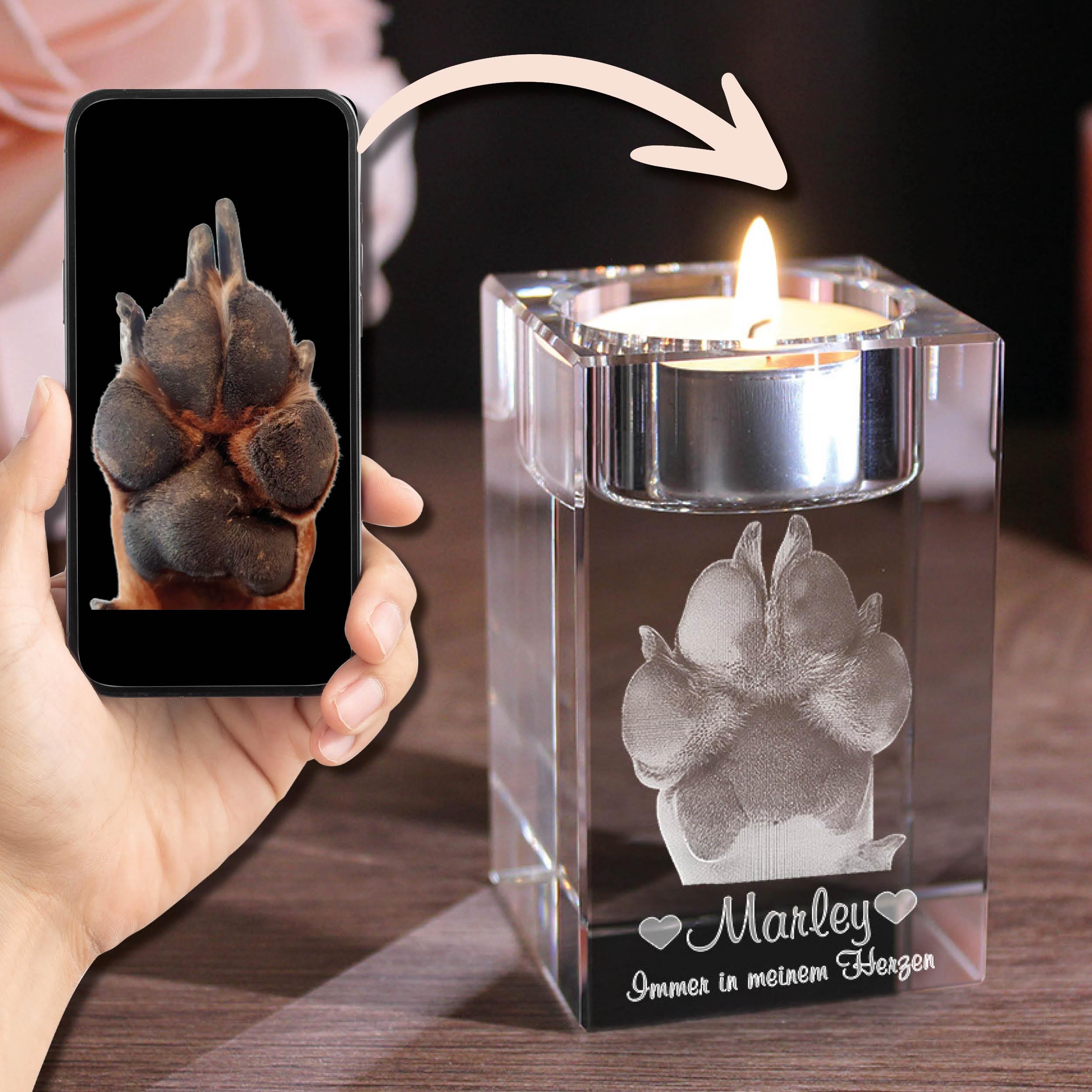 Petmemoria 2D/3D Glaskristall Teelicht Halter