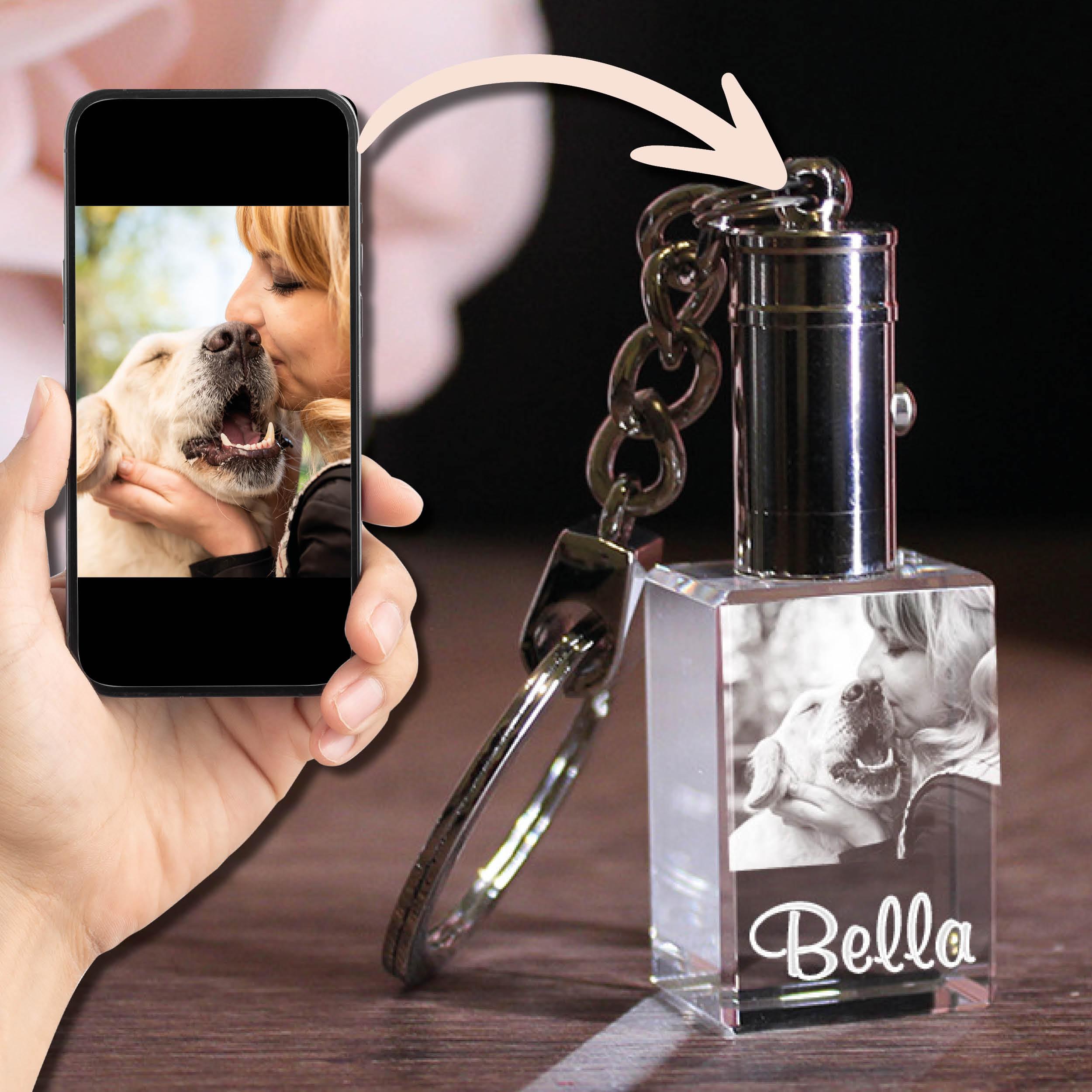 Mit diesem schönen Glasfoto können Sie einen ganz besonderen Moment mit Ihrem Haustier für die Ewigkeit festhalten. Wir gestalten für Sie Ihren persönlichen Schlüsselanhänger ganz nach Ihren Wünschen. Sie haben die Wahl ob wir ein Foto mit nur einem Tier, mehreren Tieren oder ein Bild von Ihnen gemeinsam mit Ihrem Tier nutzen. Ihr Lieblingsfoto können wir mit einem Wunschtext ergänzen. Mit dem Schlüsselanhänger haben Sie Ihren Liebling überall dabei! Der Schlüsselanhänger leuchtet in der Farbe Grün.Im Lieferumfang enthalten: